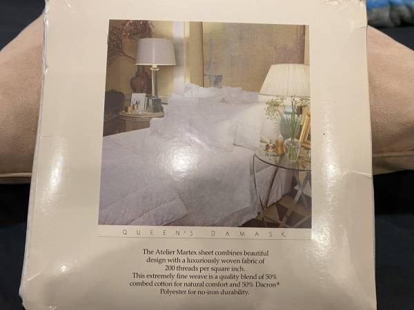 NEW Vintage Atelier Martex No-Iron Percale White Eyelet Twin Flat Sheet 200 Thread Count Poly Cotton Blend. Sealed in original packaging. Packaging shows minor wear. Flat sheet only