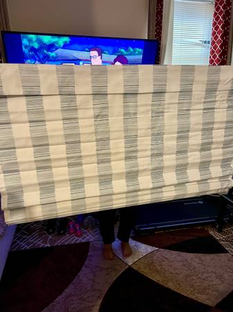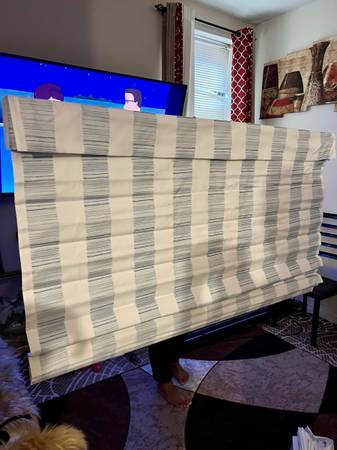 Two new - never used - The ShadeStore blue and white light blocking fabric blinds/ drapes. 1) 70w x 51L & 2) 65w x 50L. Must go. Yonkers pickup. Cross posted.