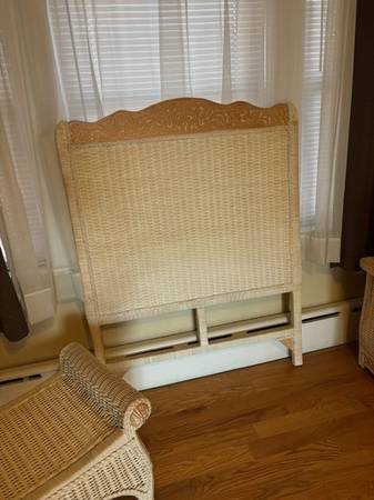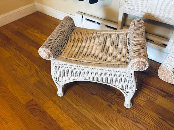 This is an all wood 5 piece set from Pier 1 Imports. White Whicker style. Needs to be cleaned or painted.