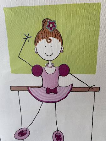 Pink Ballerina Print Canvas 20” H x 16” W x 2.75” D Pink Hanging Ribbon Child's Kid’s Playroom Bedroom Décor small pinhole (see photo) Art Work Artwork kid child