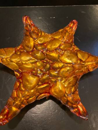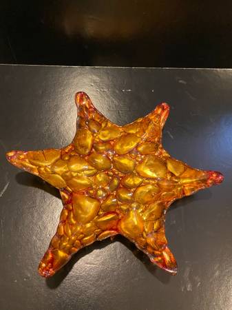 Star Shaped Glass Plate Gold / Orange Handcrafted 10” across in excellent shape
