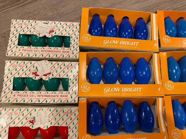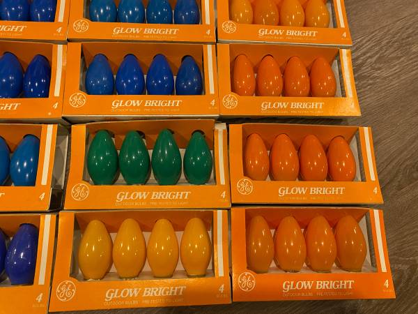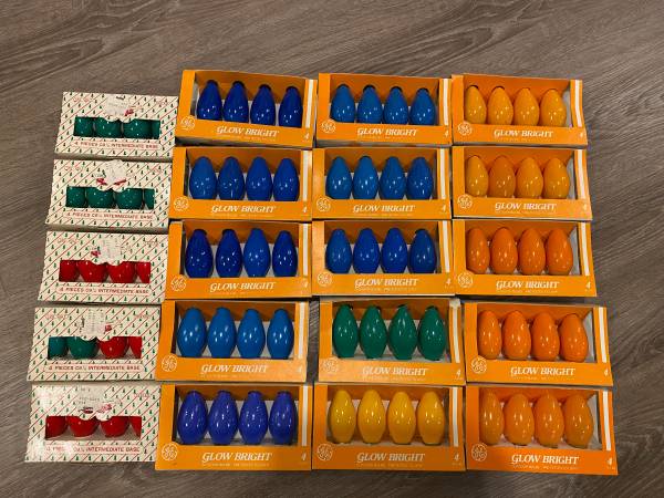 Vintage 3” C9 Christmas Replacement Bulbs GE Liberty Bell Lot of 80 – 20 4 packs Red Blue Green Orange Yellow