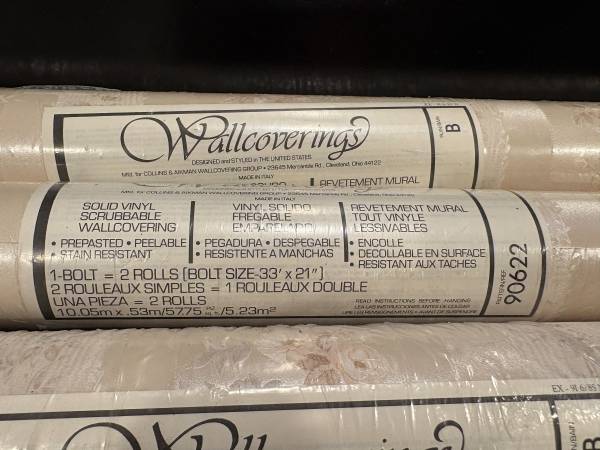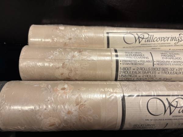 (3) Vintage Double Roll Collins & Alkman Pre-Pasted Vinyl Wallpaper Floral Pattern 90622 Flower Made in Italy