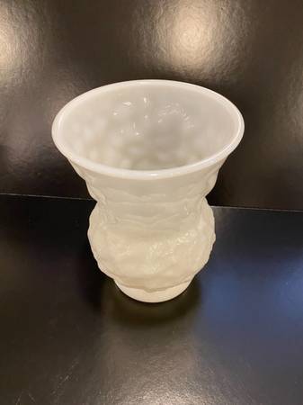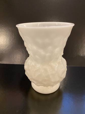8” high by 5 ¾” wide at top Vintage E.O. Brody Cleveland Milk Glass Vase Textured Crinkle Vase Bowl Planter Pot