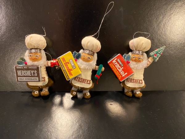 3 Vintage Hershey Baker Christmas Tree Ornaments Krackel Mr. Goodbar