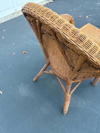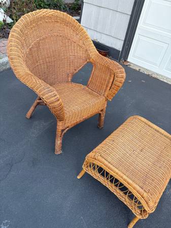 Vintage Wicker and Rattan Chair with Matching Ottoman