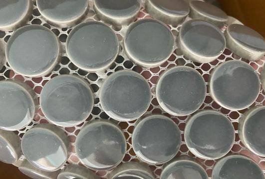 One full box of unused medium dark glossy penny round tiles. Box of 15.94 sq ft. Perfect for shower floor, back splash, floors or walls. Can mix colors for unique design. Sells for $168. Only $80....