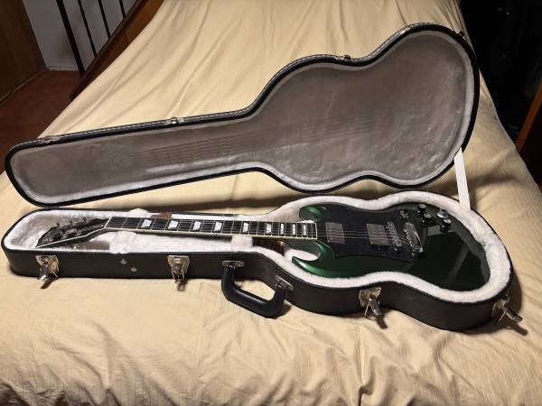 2008 Gibson Limited Edition SG standard in Metallic Green with 496R neck and 498T bridge very similar to SG custom. This is an auto tuning or robot as it was called. Everything works like new.