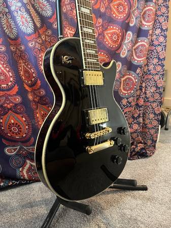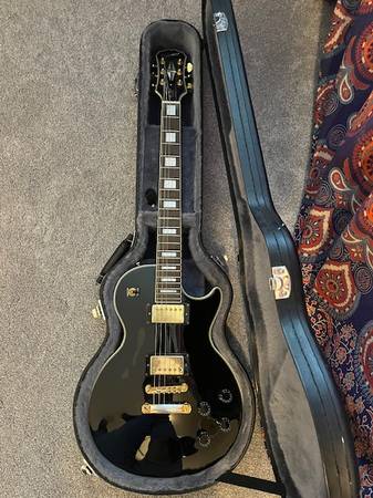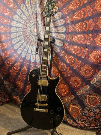 Made in Korea Epiphone Les Paul Custom. Epiphone hardcase and pick guard included. This Guitar plays and looks great. Price is firm. Possibly open to trades.