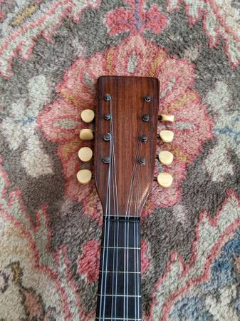 This Mandolin was made 104 years ago. It's the rarer Koa version. Most of them were made of mahogany. Koa is a wood that is endemic to Hawaii. The mandolin was recently repaired. The body had split along the side from about half way up the mandolin down to where the tail piece screws in on the bottom and then back up about half way on the other side. The split was a result of drying out. It has since been glued. The "luthier" that glued the crack didn't line it up perfectly. The crack is fixed and won't come apart again. There are a couple of small holes at the bottom where small pieces of the wood are missing. The mandolin plays and sounds great for a 102 year old Martin Mandolin.