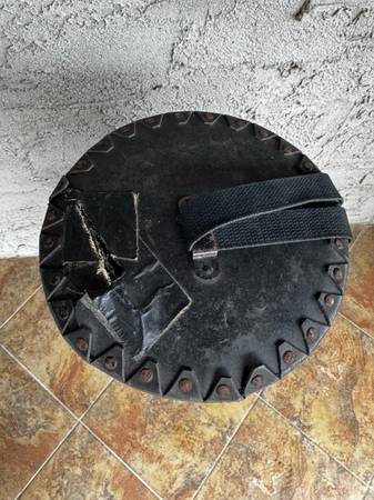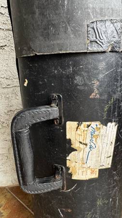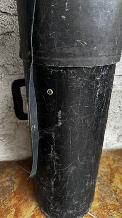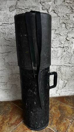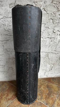 Vintage (1960s-70s) cylindrical fiber drum hardware case in fair condition. Please see pictures. 32” long, 8.5” diameter. Strap only connected to one side. Couple of holes present, can still be used if strap connection is fixed.