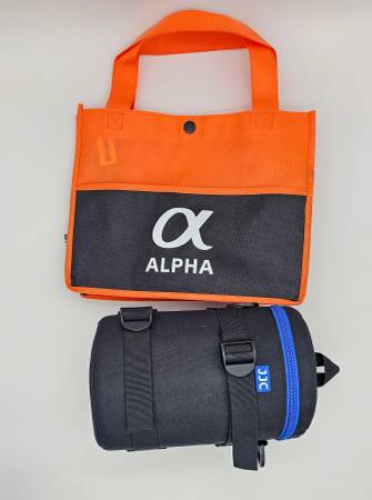 Included lens hood, rear cap, 82mm Breakthrough X4 UV filter (a $100 value), sturdy JJC lens case and Sony Alpha small bag.