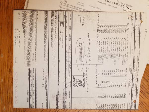 I have original dealer invoices for 151 1970 Camaros, consisting of 46 Rally Sports, 10 Super Sports, 10 Z28's and numerous others. I'd like to sell these. If your car is on the list and you'd like the original invoice to increase the value of your car, let me know.