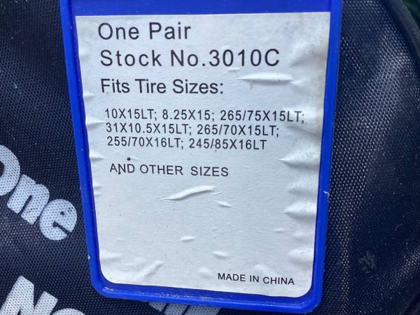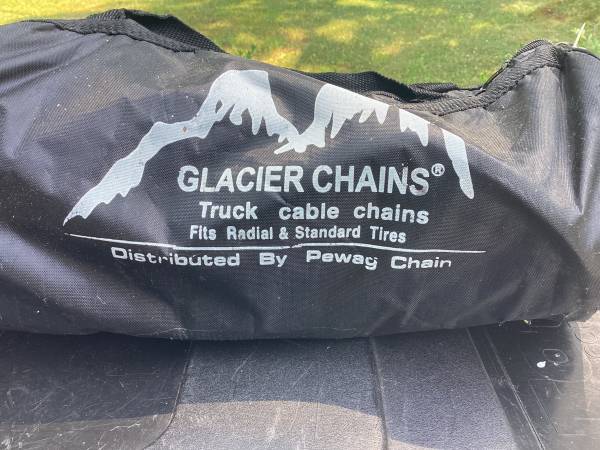 Pickup truck tire chain/cables set. Never used. Sold the truck. They were for a Ford 150 New set goes for $200 Glacier chain model 3010C come in carry case Also 2 tractor ramps that were lightly...