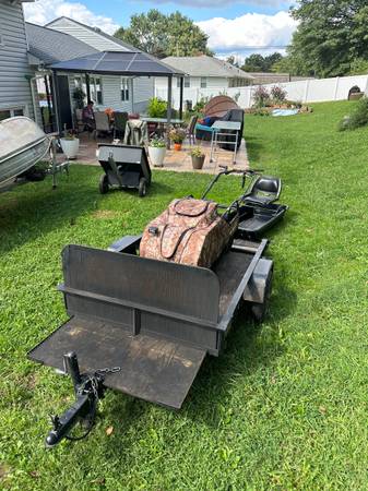 Custom-modified 2021 trailer with front storage space for a large cooler — perfect for ice fishing trips — plus brand-new tires and bearings for worry-free hauling