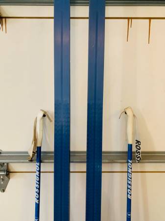 Cross Country Skis Ski 82 inches tall Poles are 60 inches Tall