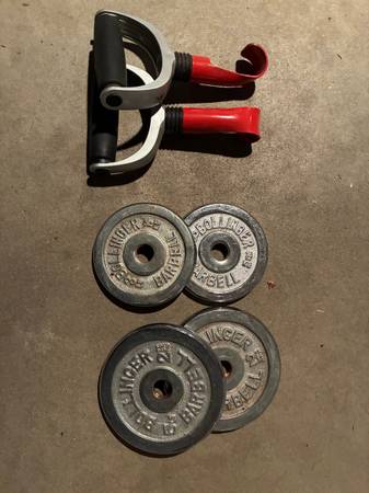 Exercise equip: weights, bike pedal, etc ALL the items in the pictures (except chin up bar) for $30