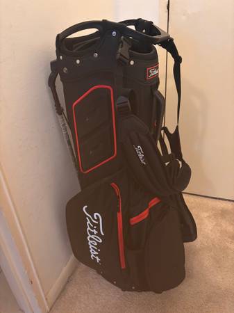 2024 Titleist stand golf bag. Perfect condition. 5-way top. Light weight. Double straps. 5 generous sized pockets plus 2 bottle pockets. Rain hood included and snaps on quickly. Very sturdy golf...