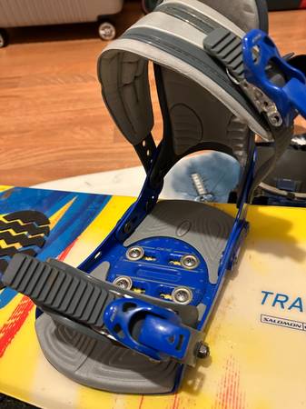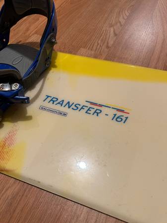 Solomon Transfer-161 Snowboard with bindings. Freestyle, cream/blue/yellow color. Used only once, excellent condition.