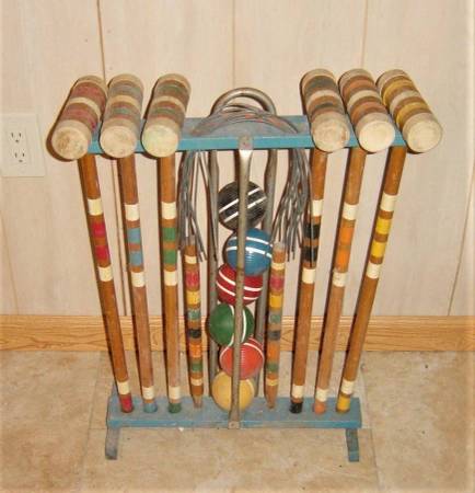 It is available and will only communicate through CL email.. Vintage (probably early sixties) wood croquet set complete with mallets, balls, stakes and wire loops and stand. Could use light cleaning, been in storage for over 20 years.