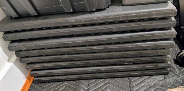 The equipment is already broken down and ready for transport (Note: I've included photos of the gym set up, but any pictured weights or barbells are not included). You will need a large SUV, truck, or van for transport.