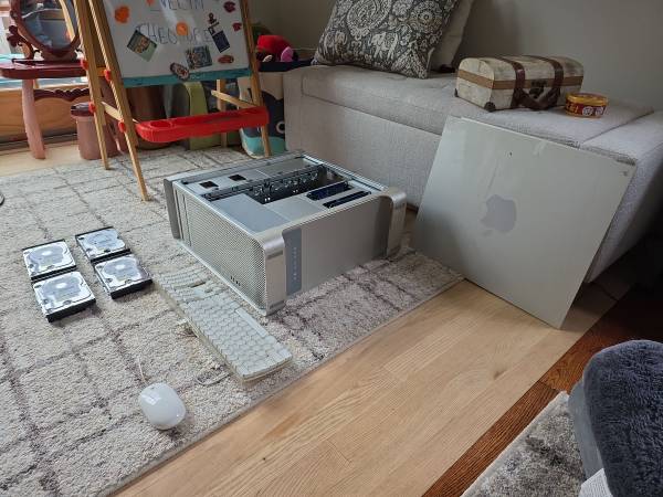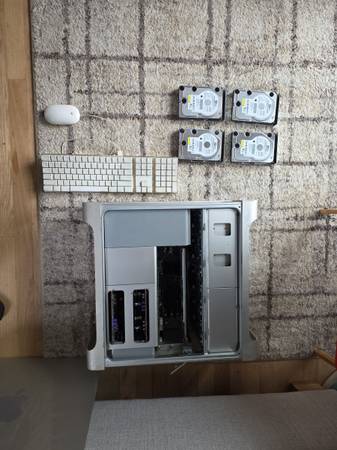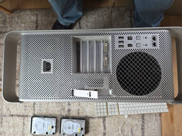Old Mac pro tower, starts up but will not boot. Good for parts. Drives shown not included.
