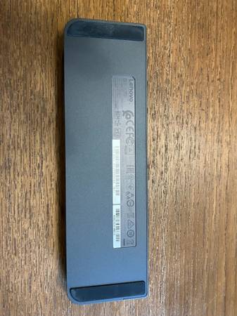 Barely used Lenovo USB-C Mini-Dock. Model 40AU0065US. Bought to use with my work laptop, but then changed companies. Features HDMI, Audio Out, VGA, Ethernet, USB, USB-C, USB 3.0 and Power in slots....