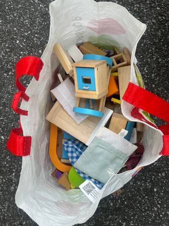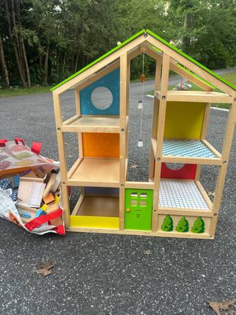 A plan toys dollhouse with furniture and dolls included. Very good condition.