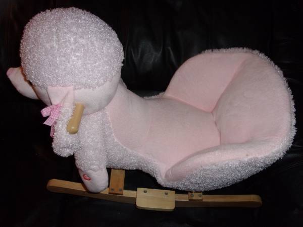 The rocker comes with a high back plush seat 9" high that secures your child while riding.