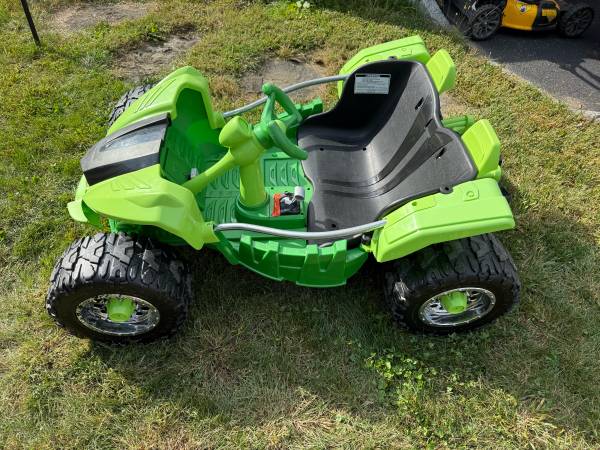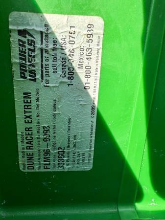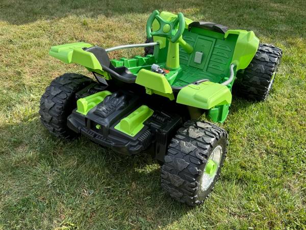 Up for sale is a 12V Power Wheels Dune Racer Extreme model FLM96 ride on toy by Fisher Price. This ride on is in excellent, lightly used condition and was stored in doors. It is complete with the exception of the sticker sheet. Stickers were never applied and not included with the car. Replacement stickers are available on eBay, etc. if desired. Everything works as it should. Nothing cracked or missing. Recommend for children 3 years and up and, seats 2 and has a weight limit of 130 lbs. Forward speeds of 2.5 and 5MPH and 2.5 MPH in reverse. Includes a 12V Power Wheels battery which holds good charge, an original Power Wheels 12V charger and a brand new Schumacher Charge and Ride 6V/12V universal quick charger compatible with other ride on toy batteries. Selling for a friend and price is firm. If you’re seeing this listing, it’s still available.so please don’t ask.$195 or best offer. Text Mike if interested.