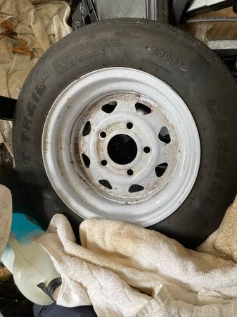 Trailer with spare tire Measurements shown in photo Brake lights and harness good working condition 54" x 87" with end folded up 54" x 108" with end fold down flat Registration and Title