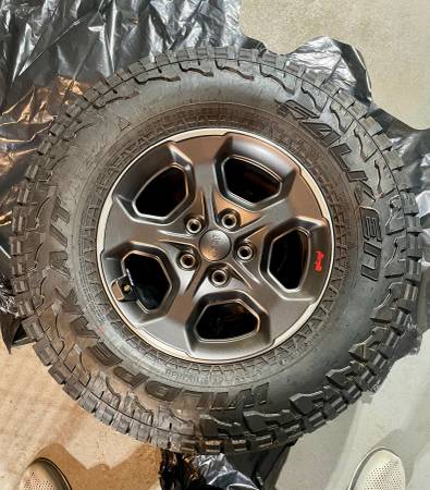 Selling my stock rims and tires from my 2020 Jeep Gladiator Rubicon. Roughly 10 miles on them ( from dealer to auto body shop). Rims: 17 inch x 7.5 granite crystal aluminum wheels. Tires: 33 inch...